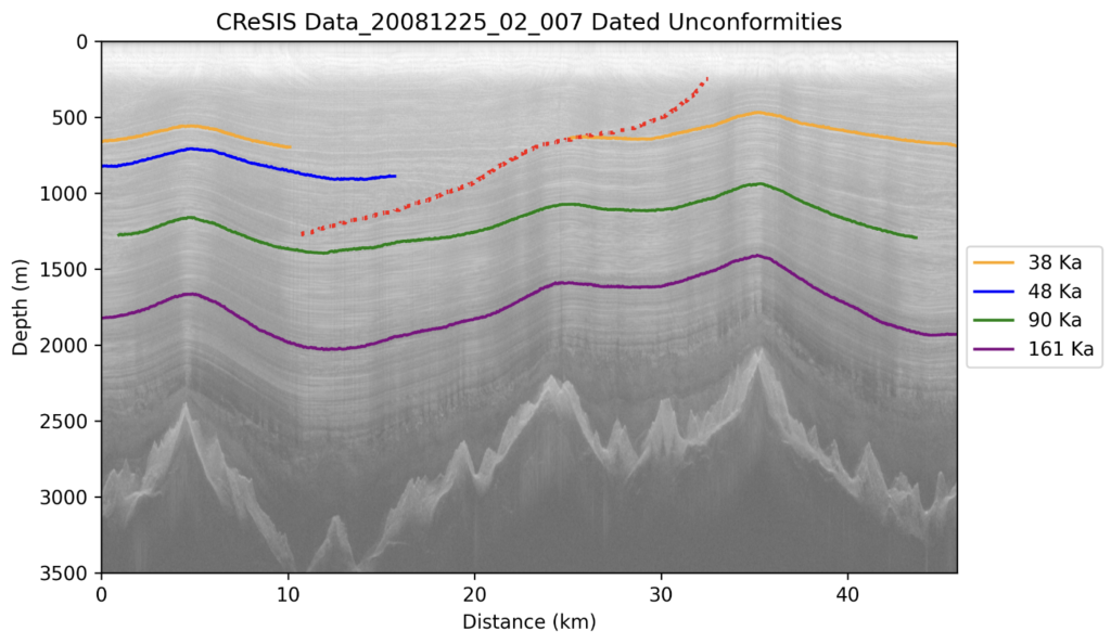 Dome A is a potential candidate for holding some of the oldest ice on the planet. Ice in the region may contain a climate record of atmospheric gas concentrations that can inform our understanding of the Mid-Pleistocene Transition (MPT), during which glacial cycles changed periodicity. But Dome A also has regions of persistent wind scour, which can disrupt the climate record. Unconformities identified in englacial layering using ice-penetrating radar provide information about the persistence of wind scour at Dome A, East Antarctica. These features are formed when high wind speeds drive net sublimation and snow transport at the ice surface. The location of these unconformities varies with the surface climate, and their geometry varies with the snow accumulation rate and ice flow speed. This project uses remote sensing techniques to evaluate the spatial distribution of wind scour at Dome A, and use the unconformities to determine the persistence of wind scouring events.